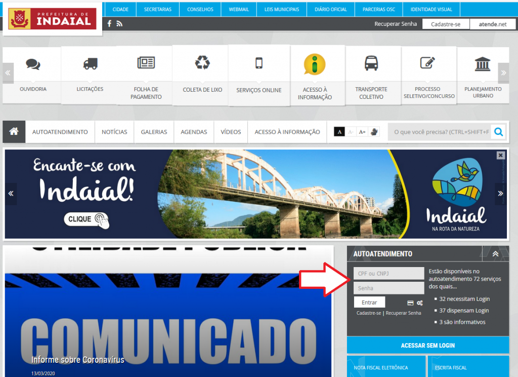 - Acessar o site do município: www.indaial.sc.gov.br;