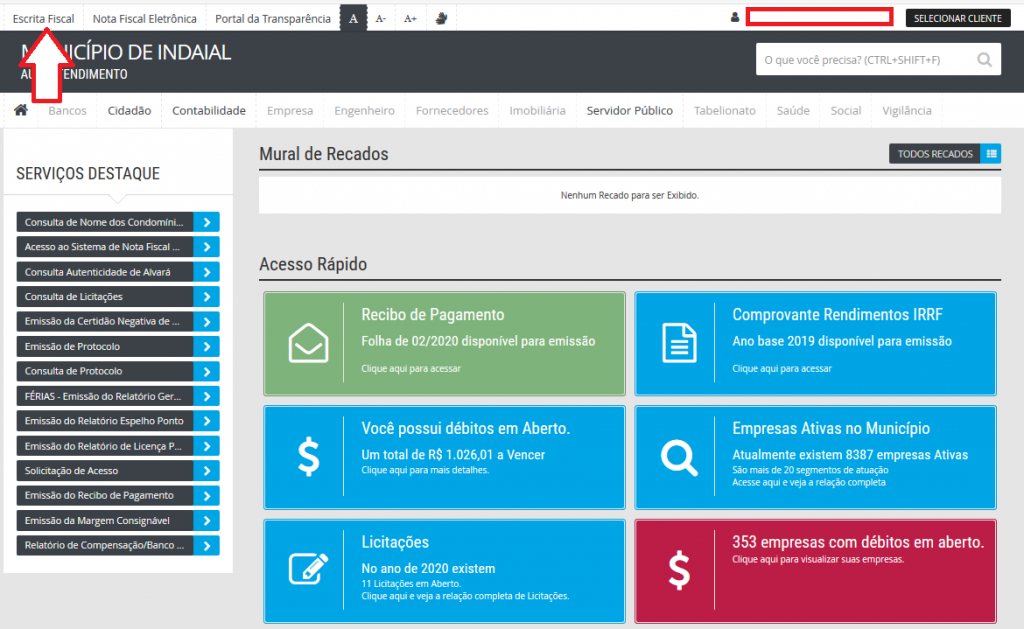 - Acessar a Escrita Fiscal no canto superior esquerdo;