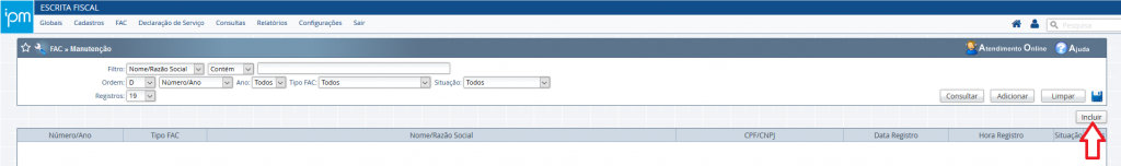 Os contadores para que possam realizar o cadastro, alteração ou baixa de seus clientes devem realizar o preenchimento da FAC na Escrita Fiscal do município, para tanto deve seguir os seguintes passos.