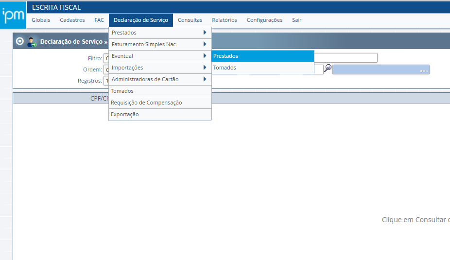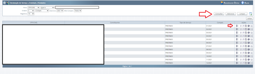 - Na nova tela apresentada a empresa pode clicar em consultar sem informar qualquer dado nas opções de pesquisa para que lhe sejam apresentados todos as competência do exerício