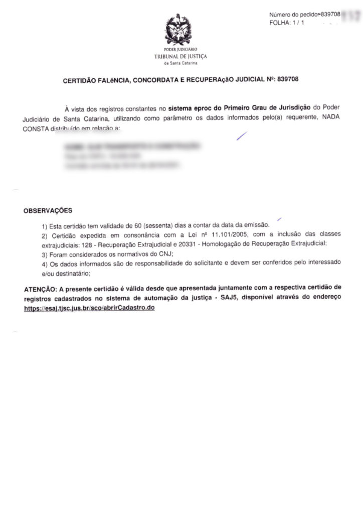 Certidão de Falência e Concordata